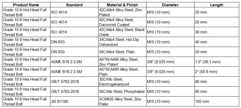 الصف 10.9 رأس HEX براغي الخيط الكامل M10 | أنسي | ASME | دين | الموردين GB/T ، المصنع